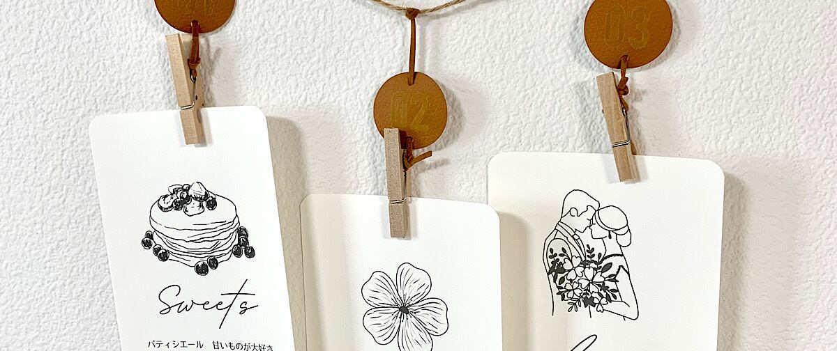 ペーパーアイテム主に、マンスリーカード、出産内祝いカード、母子手帳カバーなどを販売します。
